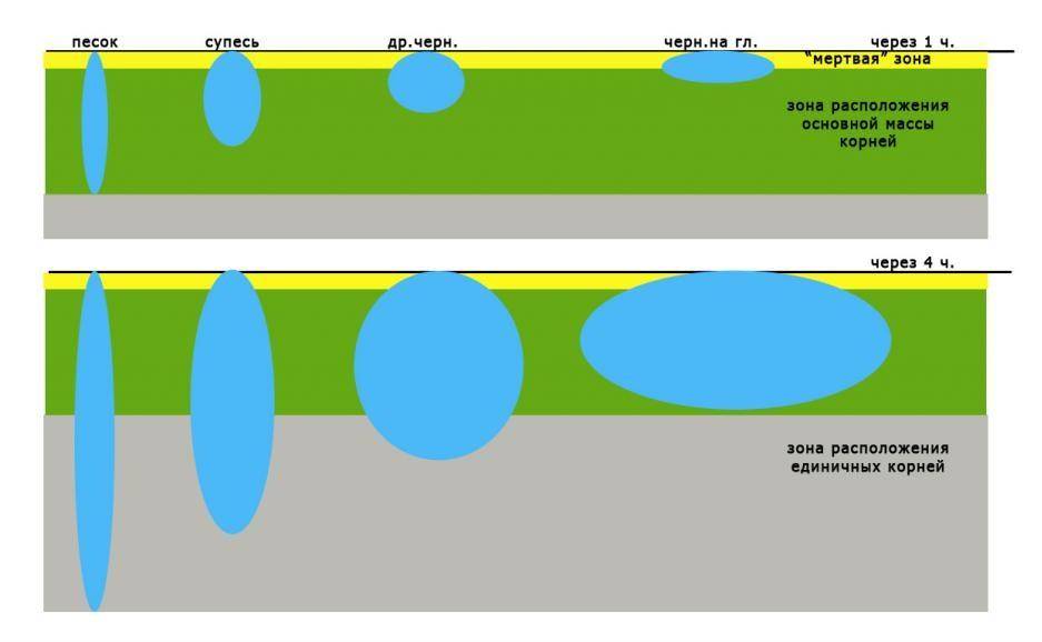 Поливочные объёмы колеблются в зависимости от погоды, типов грунтов, порядка приезда на огород