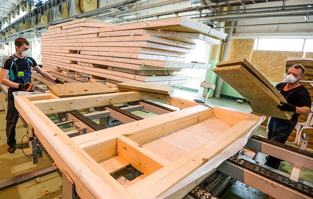 - методом «канадской платформы» — секции заготавливают горизонтально на черновом полу и выставляют их в проектное положение;