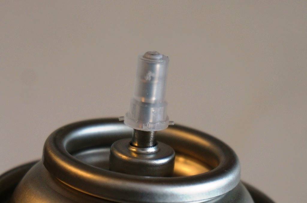 Цанговый (штоковый, штуцерный) баллон. В народе их называют дихлофосными. Они предназначены для использования в специальных мобильных кухнях (плитках) и чтобы использовать их в горелках, нужен специальный переходник, который иногда идет в комплекте с горелкой, либо покупается отдельно. Цанговый баллон с более тонкими стенками, чем резьбовой и иногда мнется в месте соединения с горелкой, что создает проблемы при установке. Считается, что в дихлофосных баллонах топливо для горелки худшего качества. Емкость 220 гр. Стоимость 40-70 руб. в зависимости от производителя.