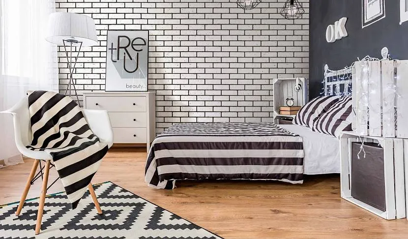 Кирпичная стена также будет уместна в скандинавском интерьере, будь то кладка из натурального кирпича или обои. Желательно, чтобы отделка была белой или светло-серой. Такие цвета характерны именно для этого стиля и помогают зрительно расширить пространство. Разбавить однотонную обстановку поможет ламинат теплых натуральных оттенков.
