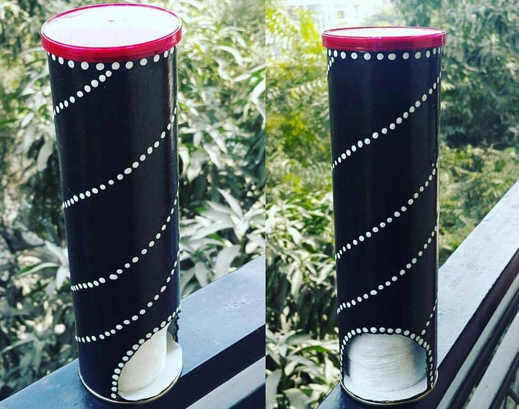 Следующий вариант того, «Принглс», пригодится девушкам. Банку без особого труда можно переделать в диспенсер для хранения и подачи Что для этого понадобится? Да по сути, ничего необычного: канцелярский нож, карандаш, немного разноцветной упаковочной бумаги, клей и пачка ватных дисков.