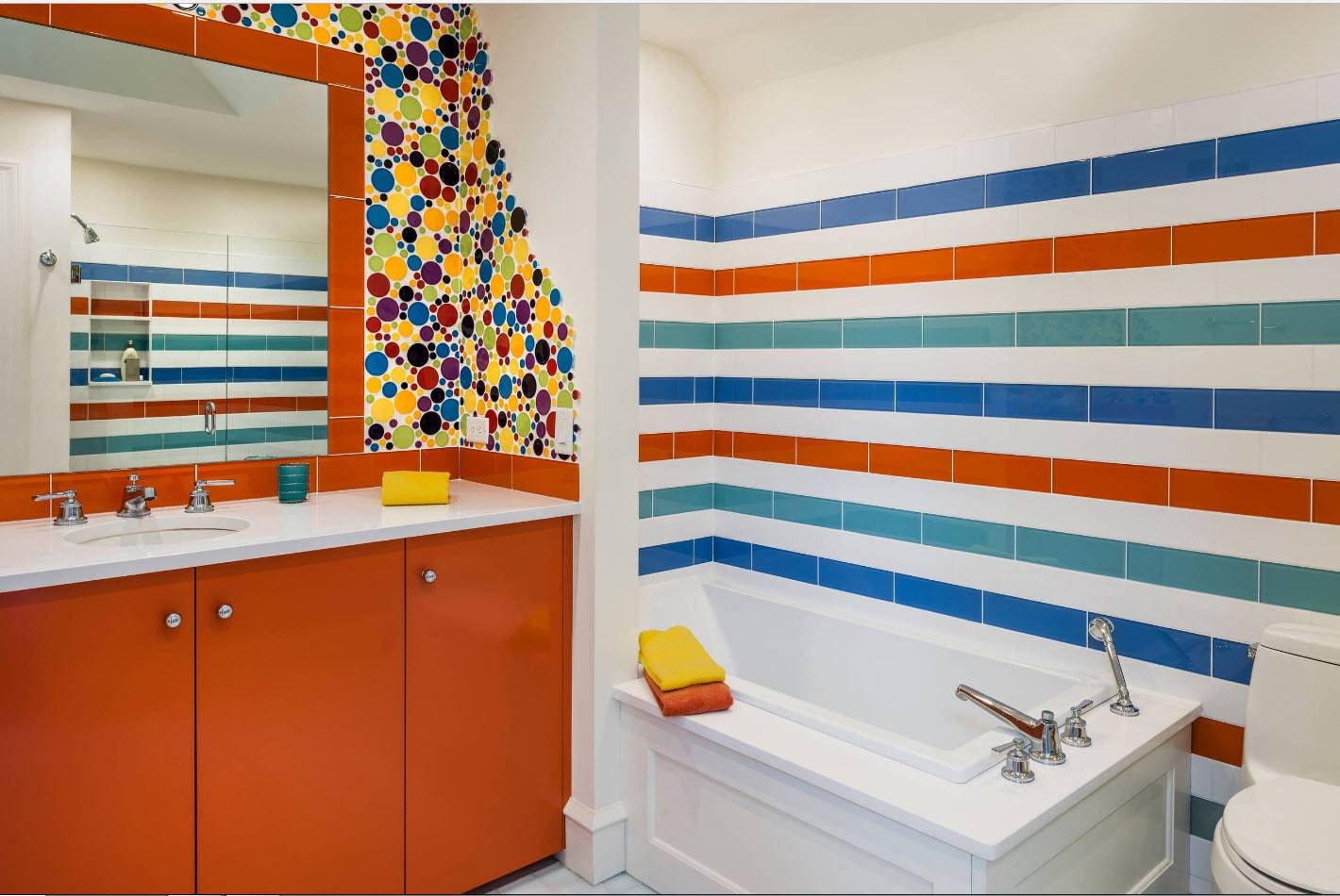 Зная технологию окрашивания плитки, можно создать уникальный дизайн ванной своими руками