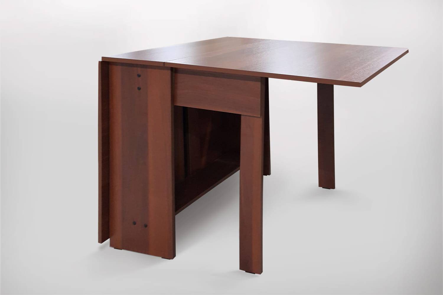 Стандартные размеры для стола такого типа — ширина 80 см, центральная столешница может быть разного размера, но чаще всего размеры составляю 25х80 см. Это связано с тем, что стол-книжку нередко приходится перемещать, поэтому он должен быть не очень большого веса.