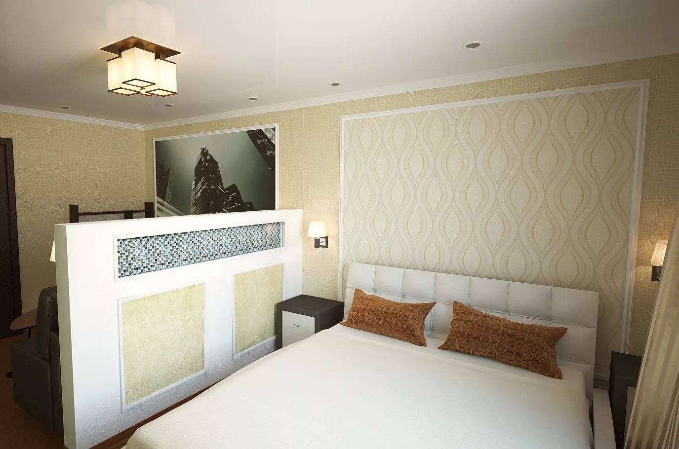 - между спальней и гостиной ставят плательный шкаф, открытую вешалку для одежды, диван спинкой к спальной комнате;