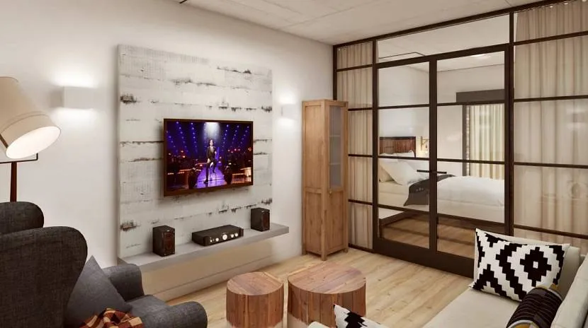 В гостиной, совмещенной со спальней, стиль лофт будет также уместен, как и минимализм. Оба эти стиля пропагандируют максимум естественного света, который позволяет даже самое маленькое помещение сделать просторным.