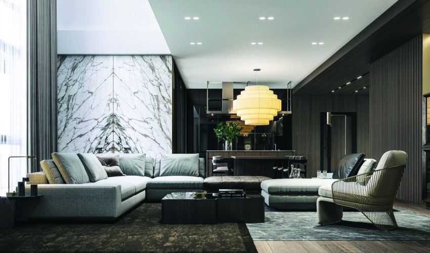 При оформлении дизайна гостиной 2020 года рекомендуют использовать минималистическое и экологичное оформление