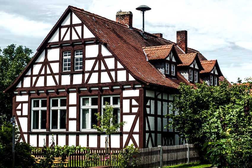 Технологию каркасного строительства начали использовать в Европе еще V столетий назад. Тогда основными материалами были лишь дерево и камень. Методика возведения фахверк зародилась в Германии. Данное слово в переводе с немецкого означает «каркасная конструкция». Внешне фасад в стиле фахверк легко узнать по характерной черте – выступающим из стен балкам, которые, благодаря пересечениям, образуют различные формы.