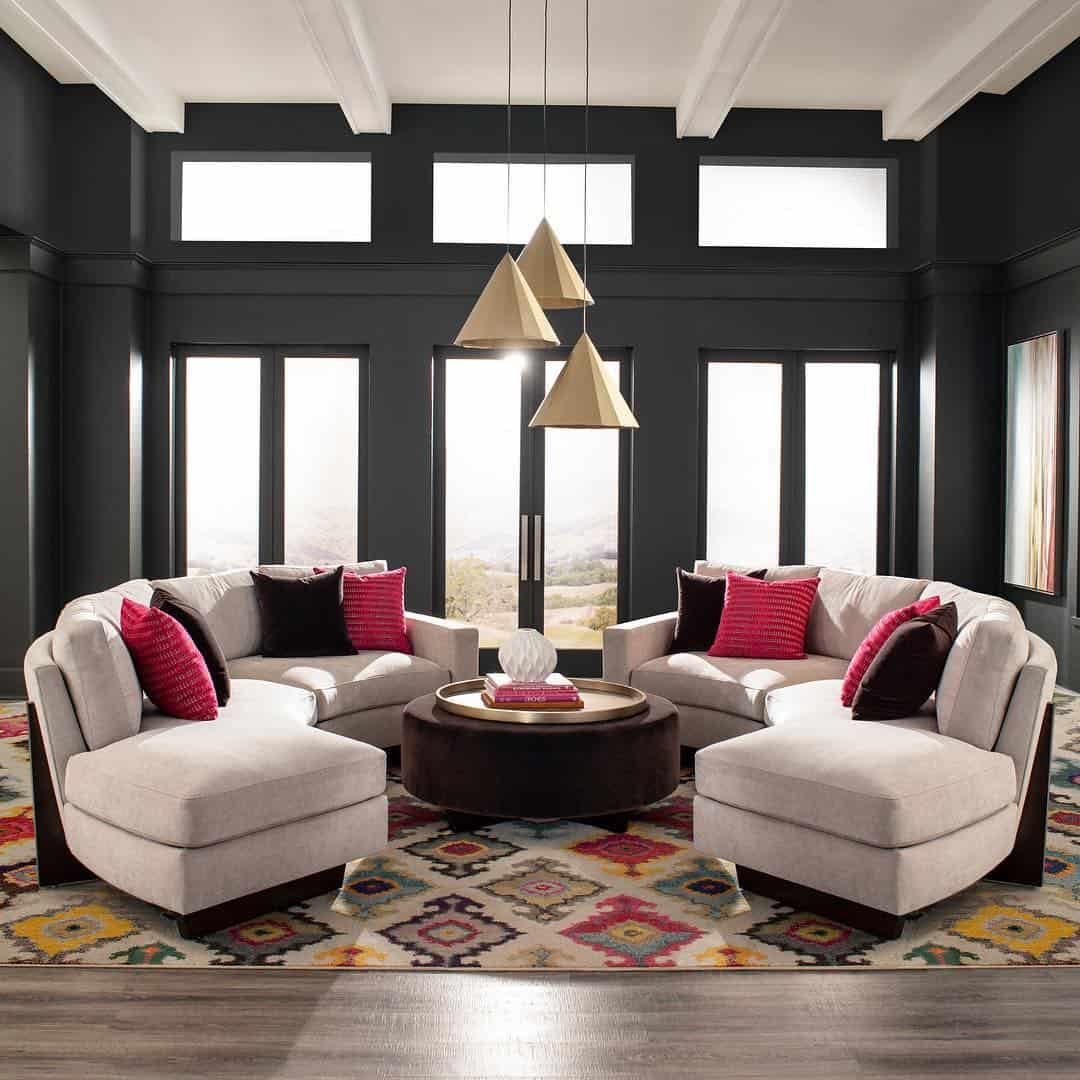 Большой диван прекрасно вписывается в гостиную в стиле модерн. В классическом и ретро интерьере стоит использовать традиционные модели диванов. Дополнит их использование ярких подушек и пледов.