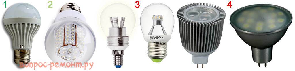 Чтобы не «попасть» на линейчатый спектр, следует также избегать имитаций под глобы и «кукурузы» в виде лампочек с прозрачной колбой, сидящей прямо на цоколе, и небольшим количеством излучающих структур, поз. 3. Освещенность от них в небольшой комнате и зрительно окажется неравномерной, а спектр чаще всего линейчатый. Также для освещения жилых помещений непригодны светодиодные лампы направленного света, поз. 4. Они предназначены для вспомогательного/служебного освещения и при длительном пользовании глазам вредны.