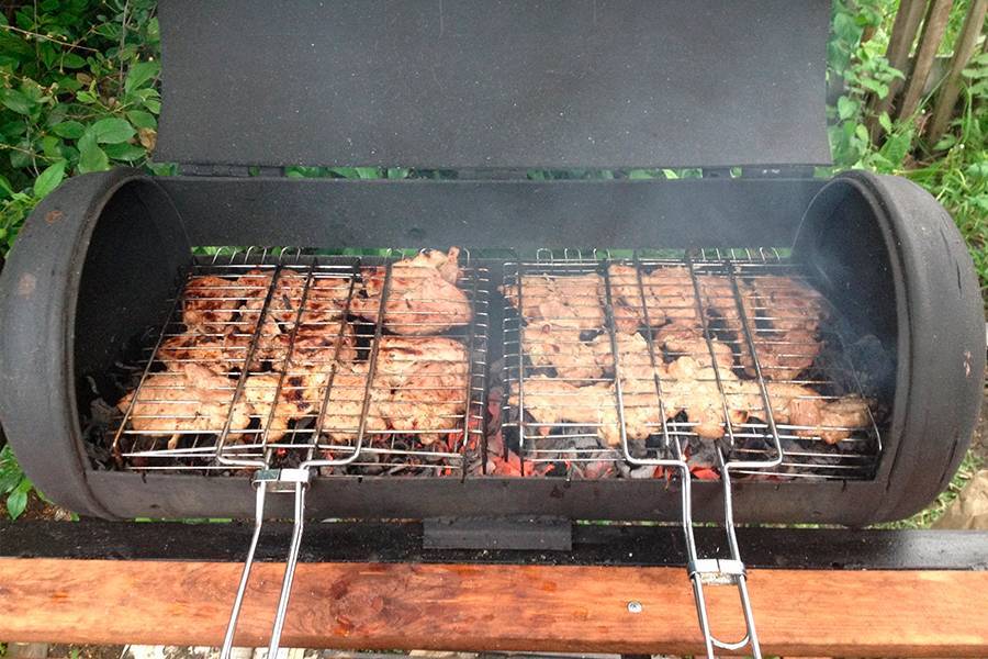 Внимание! Можно услышать мнение, что внутри подобных барбекюшниц нагрев продукта происходит неравномерно. На самом деле наличие отражающих поверхностей из толстого металла позволяет поддерживать высокую температуру во всем объеме. Тепловое излучение распространяется во все стороны, а потом отражается на продукты, располагаемые на решетке