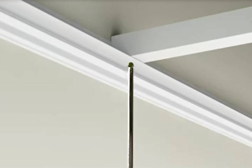 - Прикрепите потолочный профиль и поместите его в стартовый (параллельно стене).