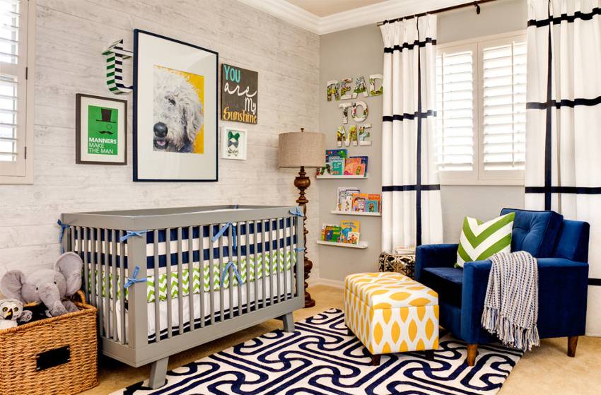 Это спокойный и в то же время тонизирующий цвет. Он отлично впишется в интерьер детской для мальчика, основанный на натуральных материалах. А зеленые пейзажи или фотообои порадуют юных любителей природы и походов.
