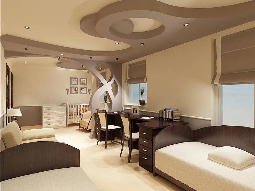 При создании проекта детской комнаты нужно подробно изучить особенности планировки квартиры. Если есть какие-то дополнительные пространства, которые позволяют увеличить площадь комнаты, их нужно использовать. Это связано с тем, что ребенку любого возраста требуется достаточное количество свободного пространства для реализации творческих замыслов. Особенно актуально продумать расширение площади, если речь идет об обустройстве интерьера детской комнаты на двоих детей.