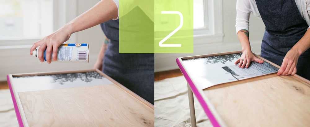 Лак и краска. Дерево нужно обязательно покрыть лакокрасочными материалами, иначе оно быстро потемнеет и испачкается. Лак позволит сохранить и сделать ярче природный рисунок дерева, а краска позволит придать столику тот цвет, который бы хотелось видеть. Наносить составы можно кистью или валиком, краску можно распылять из баллончика.