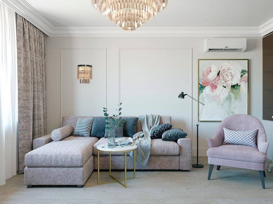На однотонную светлую базу замечательно «ляжет» современный классический стиль, который не требует сложных украшений вроде лепнины или резных дверей.