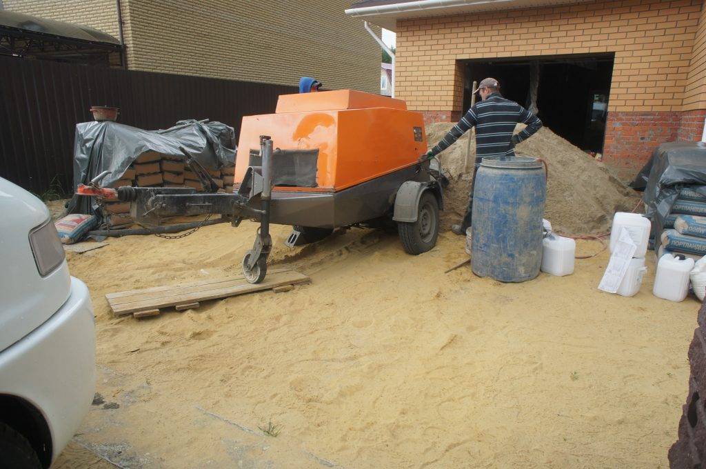 - Доставка раствора. Производство и смешивания раствора производится вне рабочего помещения, а доставляется он путем использования пневмонагнетателя.