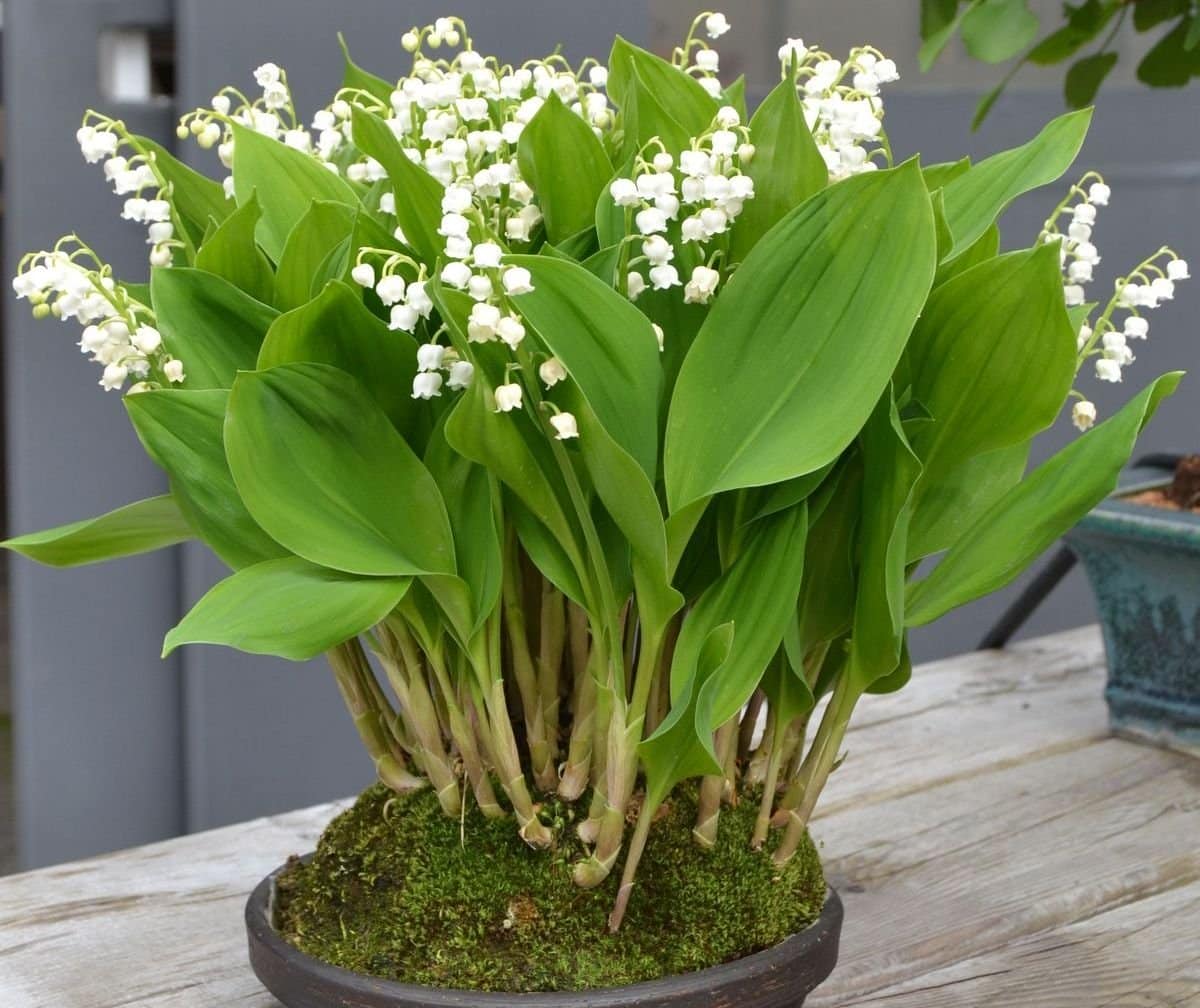 Нежные и изящные цветы, напоминающие колокольчики. Растение любит увлажненную почву и полутень, боится сквозняков. От пересадки ландышей придется отказаться.