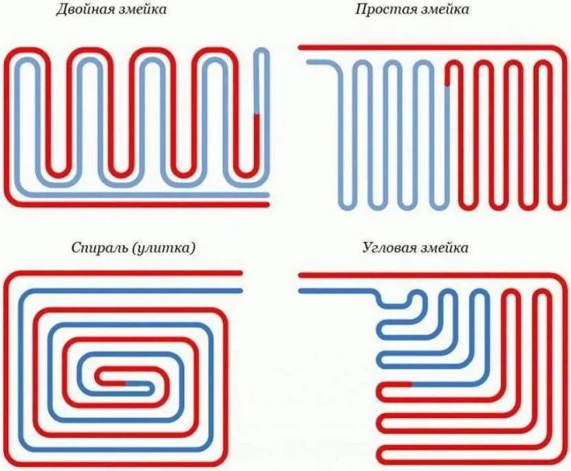 Распространенные варианты укладки теплового контура в системах теплых половИсточник akvahit.ru