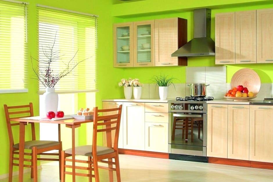 Применение зеленых обоев в интерьере кухни имеет индивидуальное преимущество – такая отделка успокаивающе действует на психику человека и отлично подогревает аппетит.