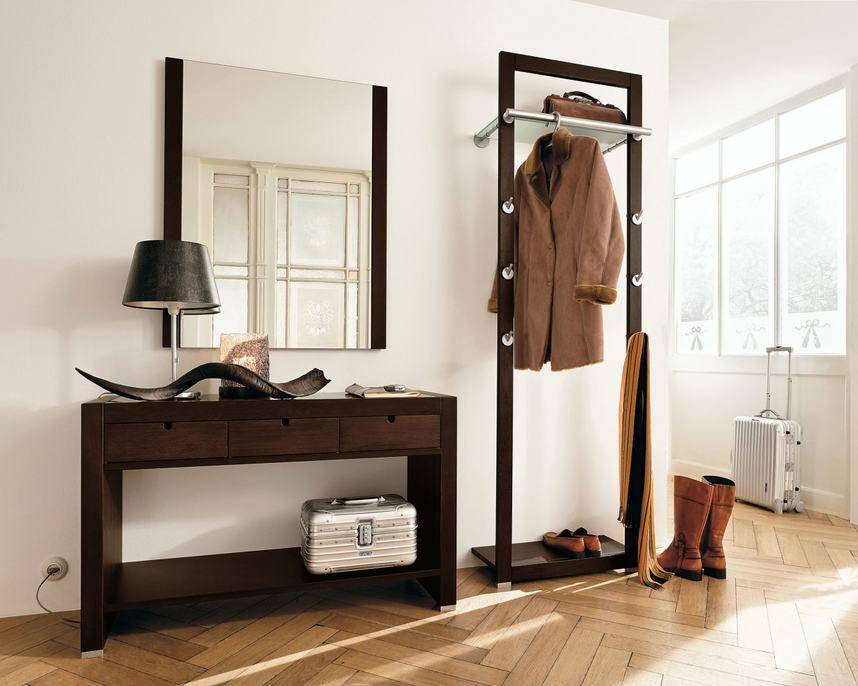 Для классических интерьеров покупают металлические или деревянные вешалки. Изделия из дерева все-таки более популярны, они хорошо сочетаются с мебелью, напольным покрытием и дверным полотном из аналогичного материала.