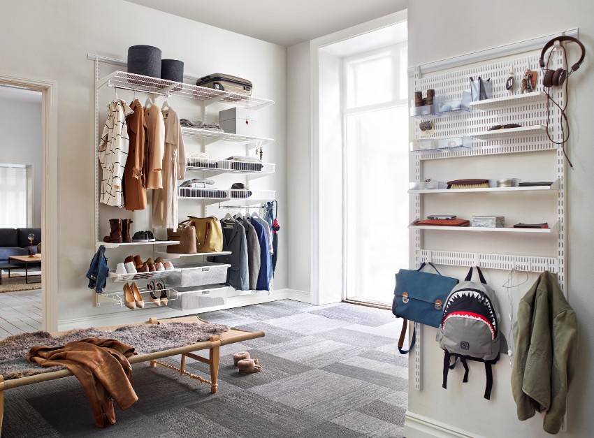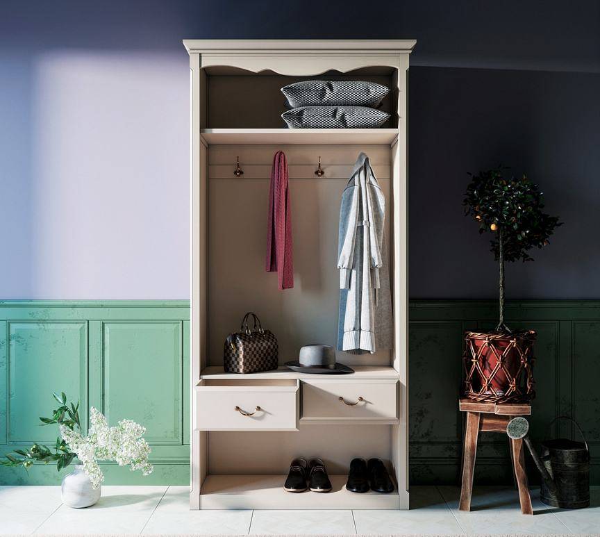 - многоярусные решения (верхняя часть отводится под верхнюю одежду, нижняя – под сумки, обувь и вещи детишек);