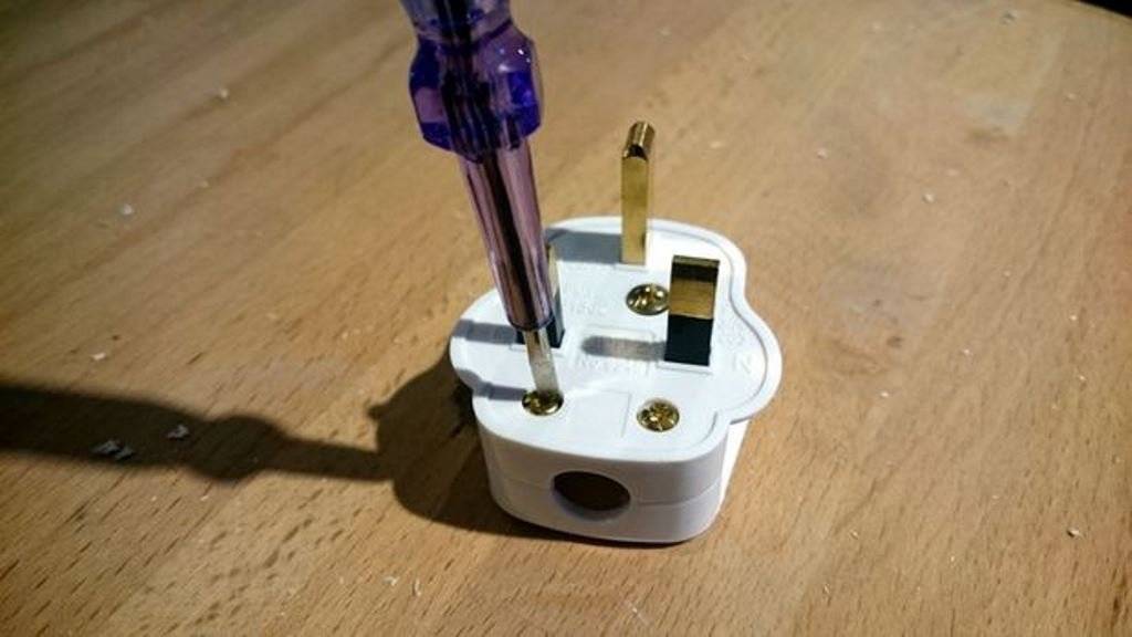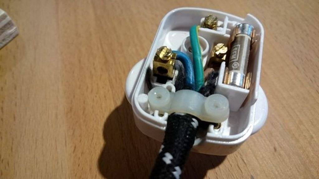 Этап 8: Подключение штепсельной вилкиДля начала работы с вилкой, необходимо открутить все винты и открыть ее. Использую ножницы или кусачки зачистите провода или удалите 0,5 см изоляции и обнажите проводки. Пальцами закрутите эти проводки, чтобы они в дальнейшем не осыпались.Теперь подключаем проводки к вилке:сверху — желто-зеленыйчуть ниже — красныйвнизу — синийКогда вы вставили провода в соответствующие контакты можно затянуть винты.