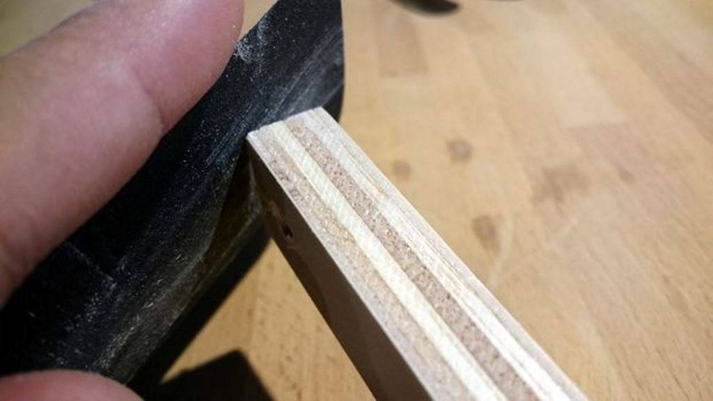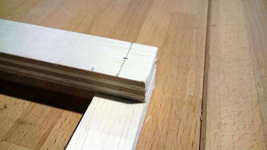 Лобзиком делают пропилы глубиной 1 см и шириной, соответствующей толщине фанерных стоек.