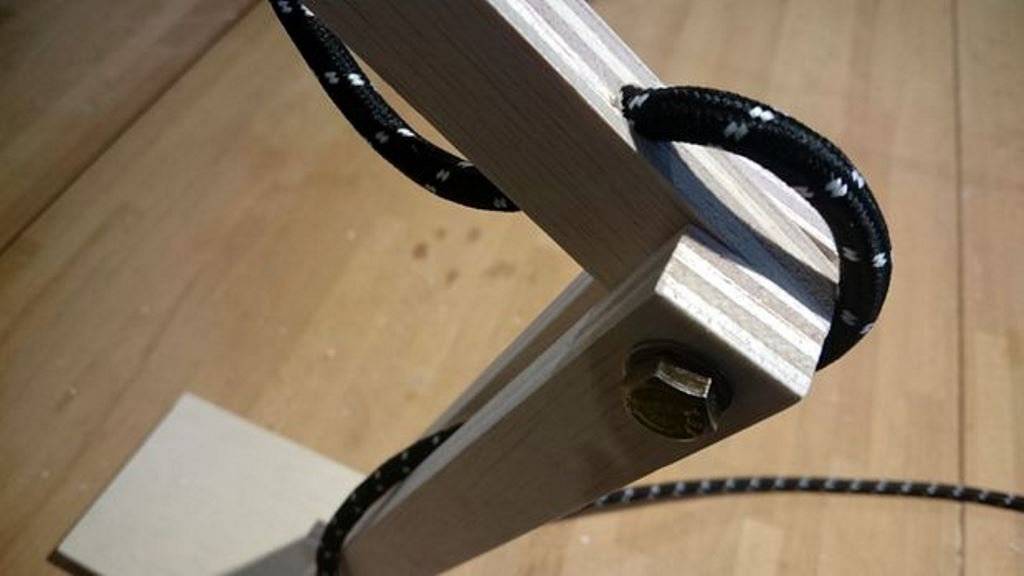 Этап 7: Продевание шнураПроденьте шнур через все отверстия. Начинать следует с верха конструкции, точно так же как показано на фотографиях. Провод может идти и по-другому. Все зависит от вашей фантазии. Затем необходимо закрепить светильник к основанию с помощью болтов и гаек.