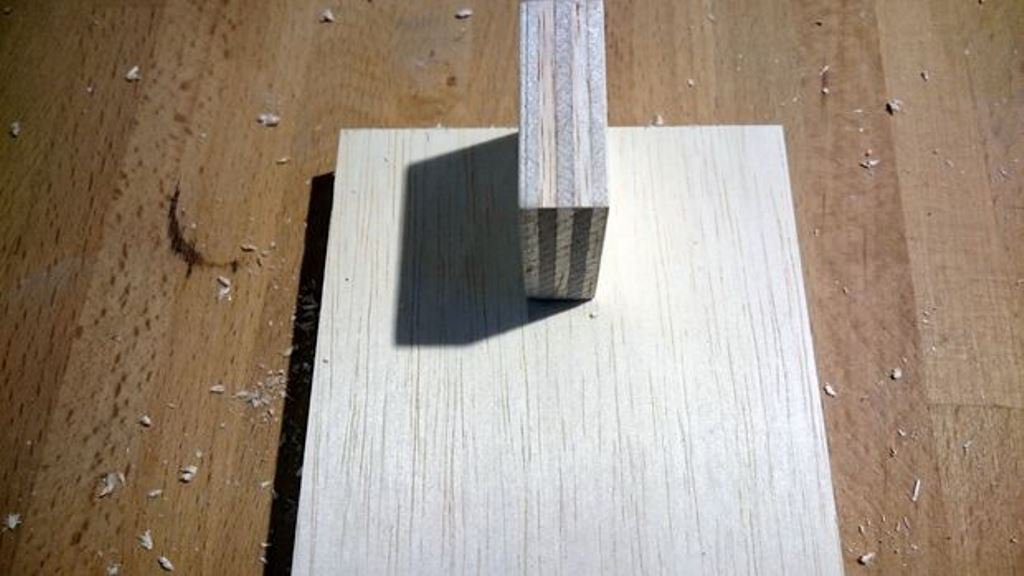 Этап 1: Подготовка древесиныФанера разрезается на 5 частей:- 3 полосы 25 мм шириной и длинной 300 мм — 1 шт. по 160 мм в длину и шириной 100 мм — 1 квадратный кусок 40 мм на 40 ммВсе размеры могут быть изменены. Стоит учитывать, что если полоски слишком длинные, а базовая часть короткая, то лампа может быть не устойчивая.