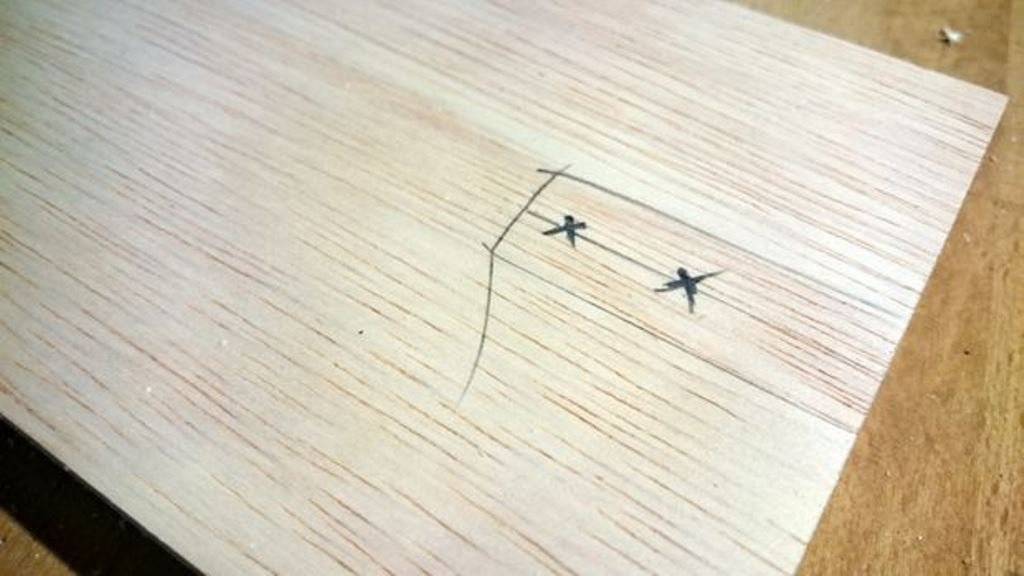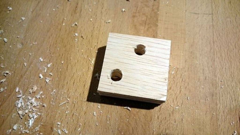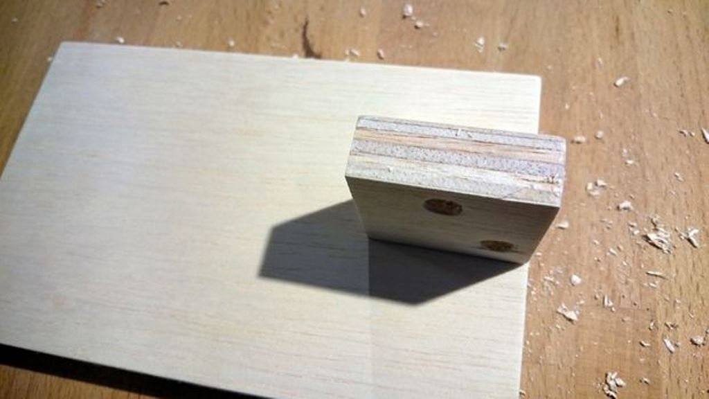 Этап 5: Построение основанияПросверлить 2 отверстия в квадратном блоке . Первое отверстие в углу, второе сделано с отступом в 1 см от края.Затем поместите этот блок на основание и отметьте его карандашом. Крестиками пометьте середину и 1 см от края отметки .