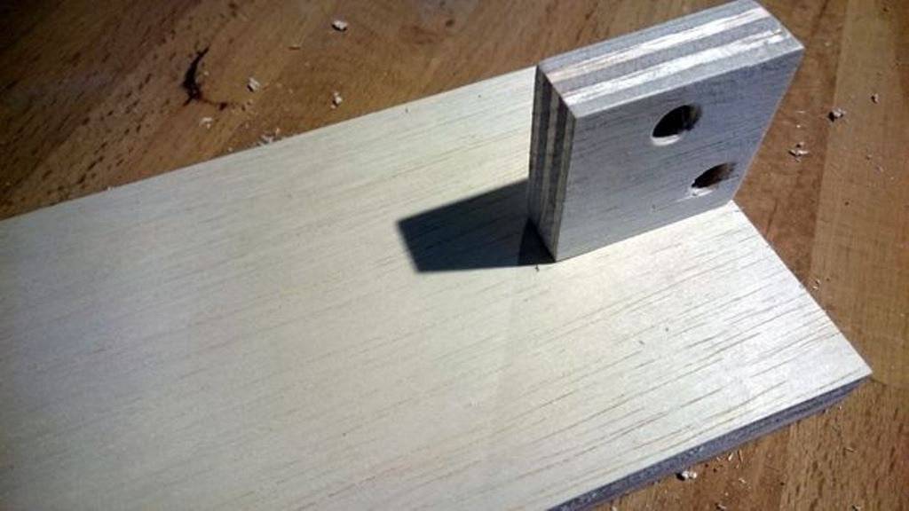 Этап 6: Прикрепление основания шарнираПоместите квадратный блок на основание и с помощью двух винтов с потайной головкой прикрепите этот блок. Сильно затягивать не нужно, т.к. может быть повреждена фанера.