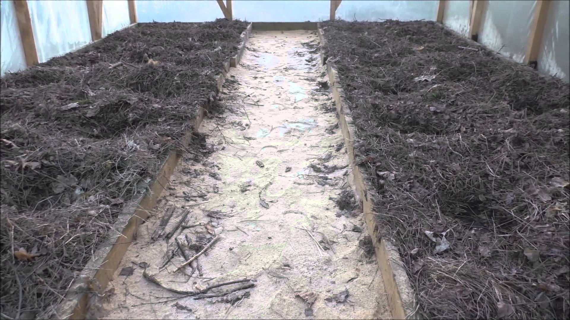 Осенью укладывают в теплицу слой сухой листвы, соломы и зеленой травы.