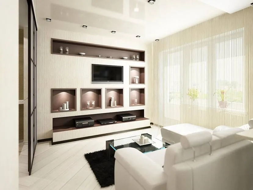 - Телевизор, углублённый в нишу, будет гармонично вписан в интерьер.