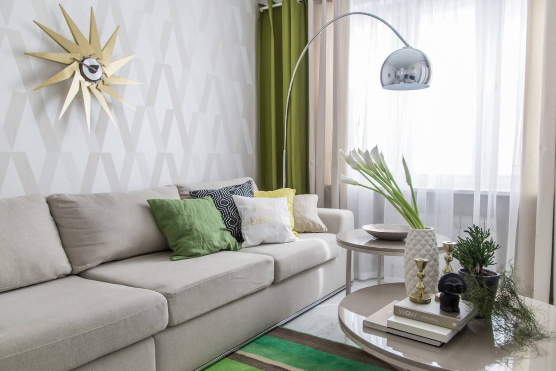 Помните правило трёх: при оформлении пространства никогда не используйте больше трех цветов, чтобы интерьер не смотрелся безвкусно. Поэкспериментируйте, поиграйте на контрастах. Но постарайтесь сильно не увлекаться, чтобы переборщить с красками. Для гостиной с малой площадью подбирайте светлый цвет, поскольку темный цвет визуально уменьшает пространство.