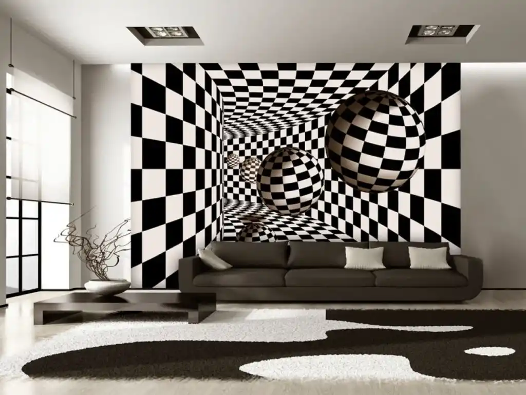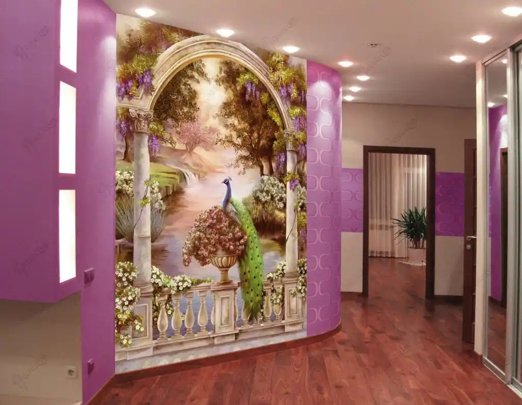 Для длинных и узких пространств используют трехмерные изображения водопадов, городских улиц или бескрайних полей. Освещение необходимо использовать точечное, настенное, желательны геометрические рисунки, расположенные поперек длины коридора.