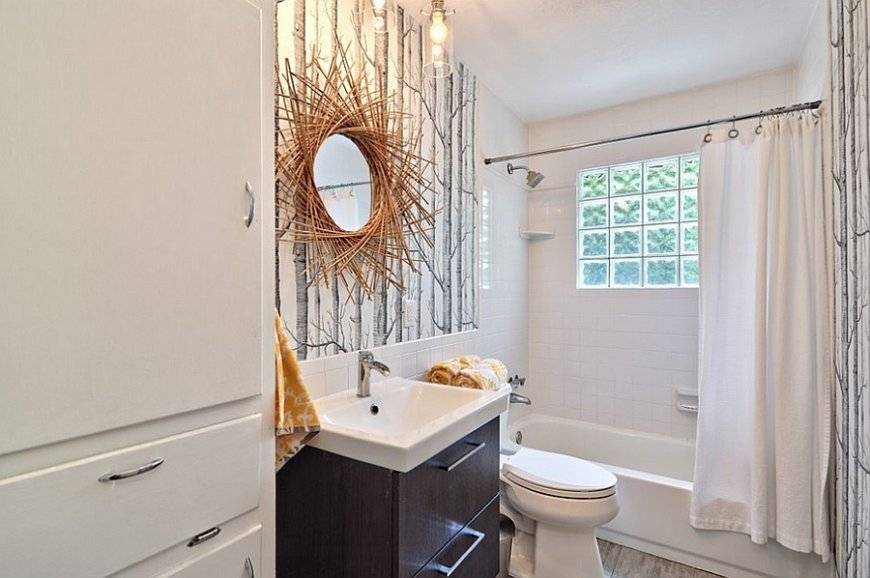 Как и для любого другого скромного по размерам помещения, для ванны лучше всего подобрать обои с мелким рисунком, чтобы комната не выглядела еще более маленькой.