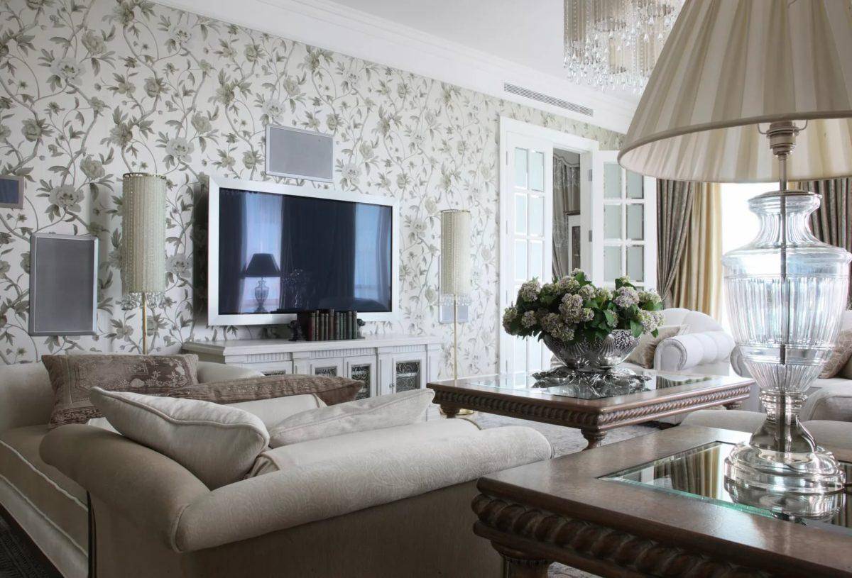 Флизелиновые обои в зале смотрятся эстетично и свежо