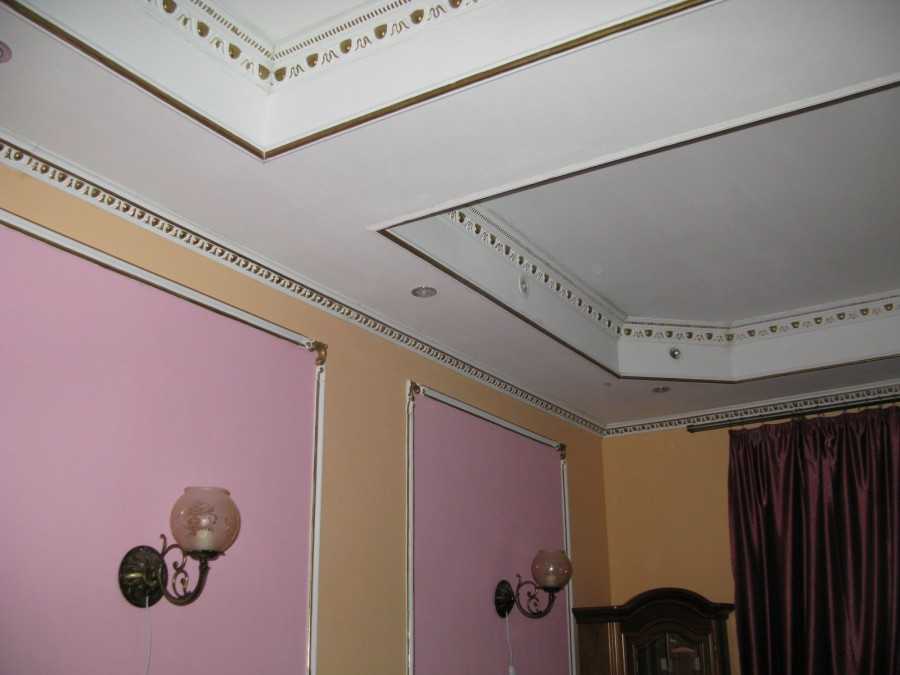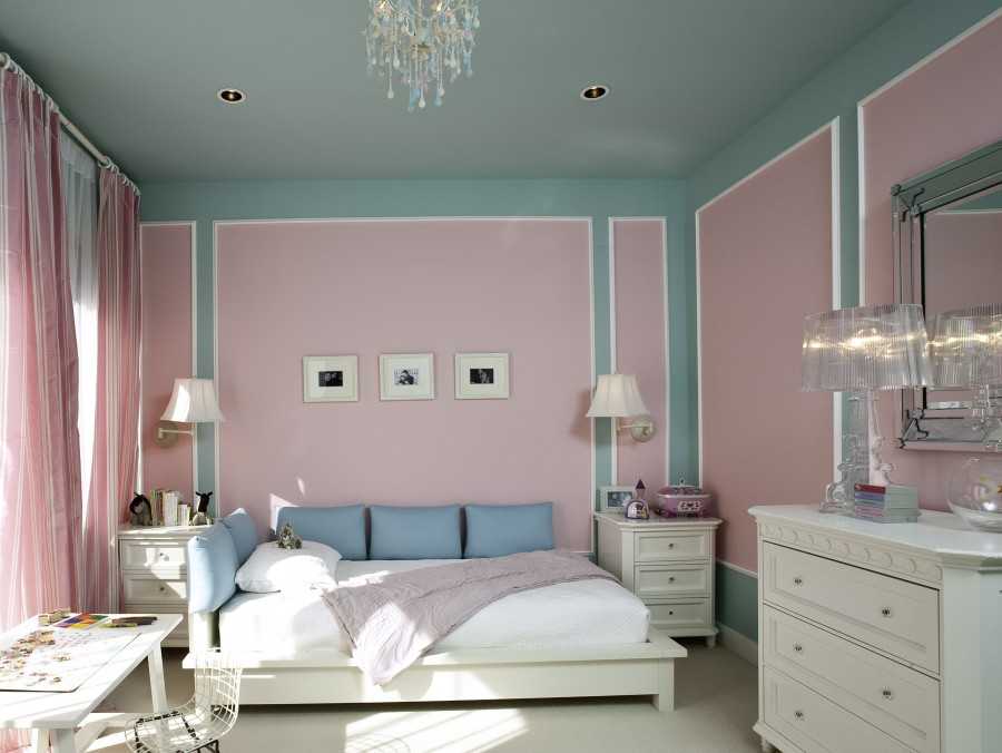 Покраска обоев на стенах и потолке одним цветом, визуально обеспечивает однородную и ровную поверхность.