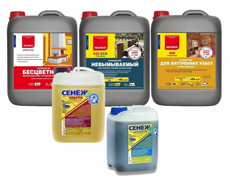 Отечественный рынок стройматериалов просто завален антисептическими составами от разных производителей. Вот список самых популярных пропиток, которые обычно используют.