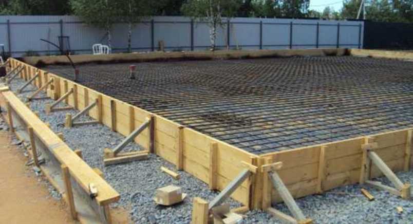 При устройстве опалубки фундамента-плиты не возникает особых сложностей при ее монтаже. Стоит только четко разметить крайние габариты конструкции и выполнить тщательное крепление щитов опалубки по вышеописанному варианту, только без фиксации шпильками.