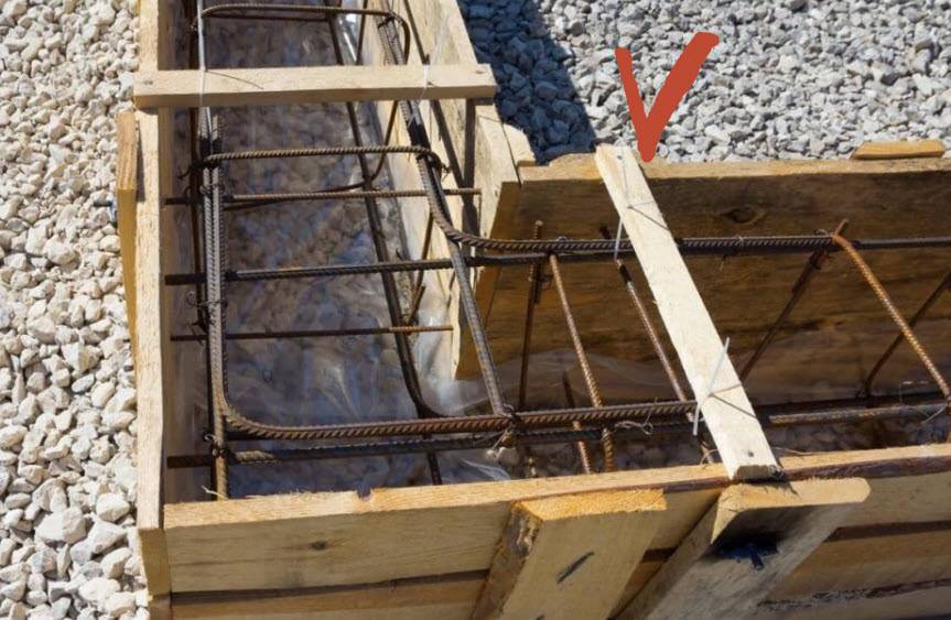 5. Так же не нужно делать так, чтобы арматура была снаружи фундамента. Она должна проходить не меньше чем на 7-8 см. от верхнего/нижнего края. И не менее 3 см. от боковых сторон.