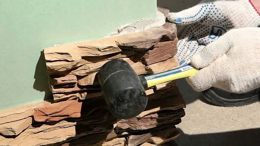Технология отделки зависит от вида используемого материала. Один предполагает фиксацию на неровные поверхности, другой – на тщательно выравненные. К примеру, гибкий камень в интерьере прихожей требует идеально ровных стен. Применение гипсовой, керамической плитки допускает небольшие отклонения плоскости. Выравнивание осуществляется добавлением толщины клея. Некоторые виды пластиковых панелей монтируются на обрешётку. В качестве наглядного примера опустим технологию подготовки (выравнивания) основания и рассмотрим этапы облицовки декоративным камнем наглядно: