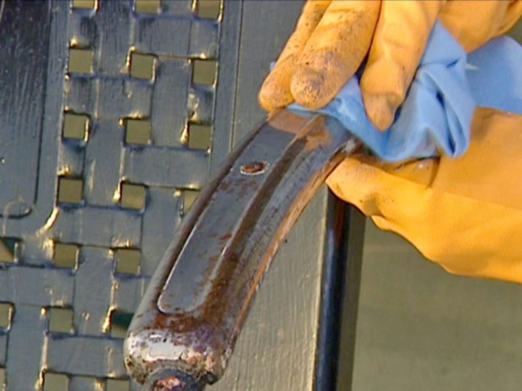 Поверхность очищается от старого покрытия, после чего шлифуется абразивными дисками-насадками на электродрель.