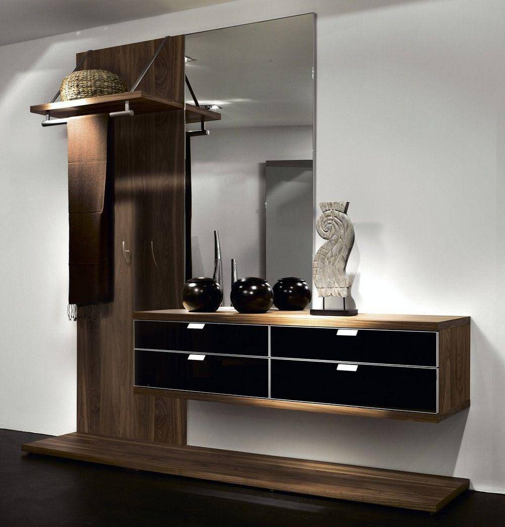 Современный дизайн ценит интеллектуальную, многофункциональную мебель, интересно дополняющую дизайн интерьера: откидные сиденья; обувница с сиденьем; модульные системы; узкие комоды, пристенные столики-консоли.