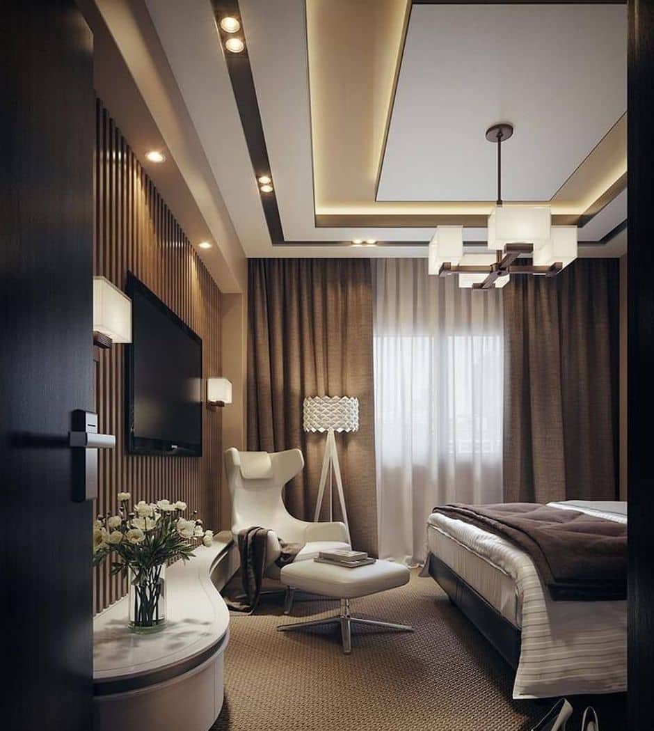 В спальне подвесные потолки с легкостью создают ту самую романтическую атмосферу. Секрет успеха очень прост: выбери любимые цвета с материалами и продумай систему освещения.