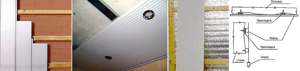 Для потолков, обрешетка под пластиковые панели, собирается из частей, которые будут закреплены на стенах по периметру помещения, и поперечных составляющих.