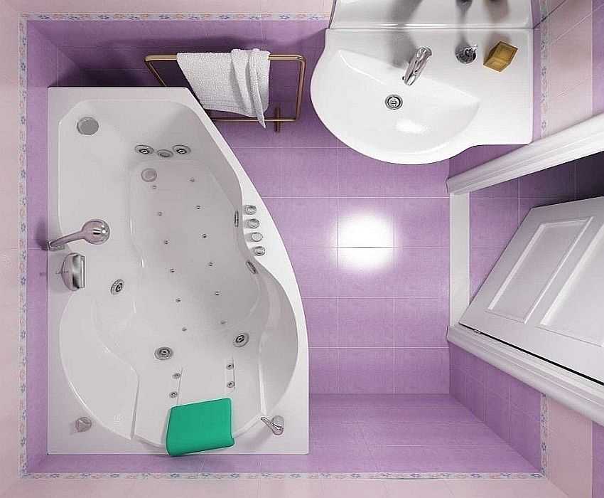 Если вы не можете обойтись без ванной, есть несколько вариантов. Первый — поставить ванну напротив входа, выбрав размер от стены до стены. Останется немного свободного места перед ванной. В это пространство можно вписать небольшую раковину. Причем она может быть установлена так, чтобы полностью или частично оказалась над ванной. Если раковина размещается в той области, где установлен ,