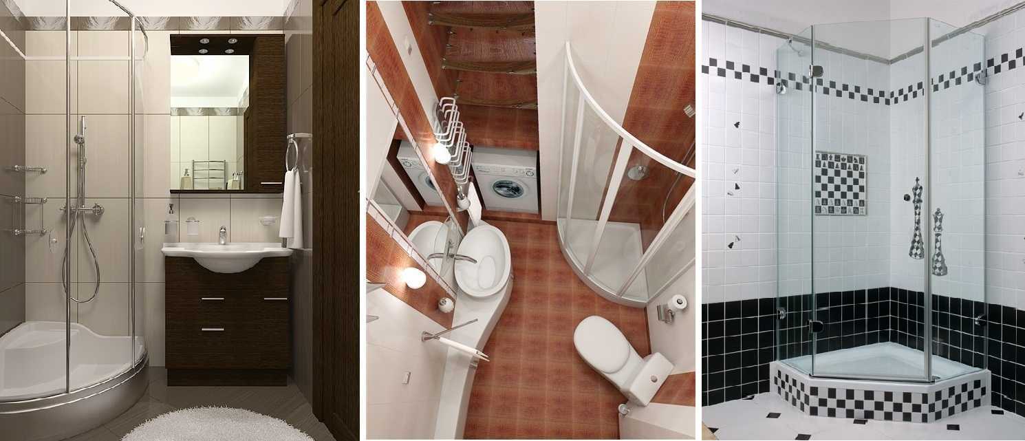 Если решите ставить готовую душевую кабину, то в такое помещение впишется только угловая небольшого размера. В оставшееся свободным место можно установить только небольшую раковину.