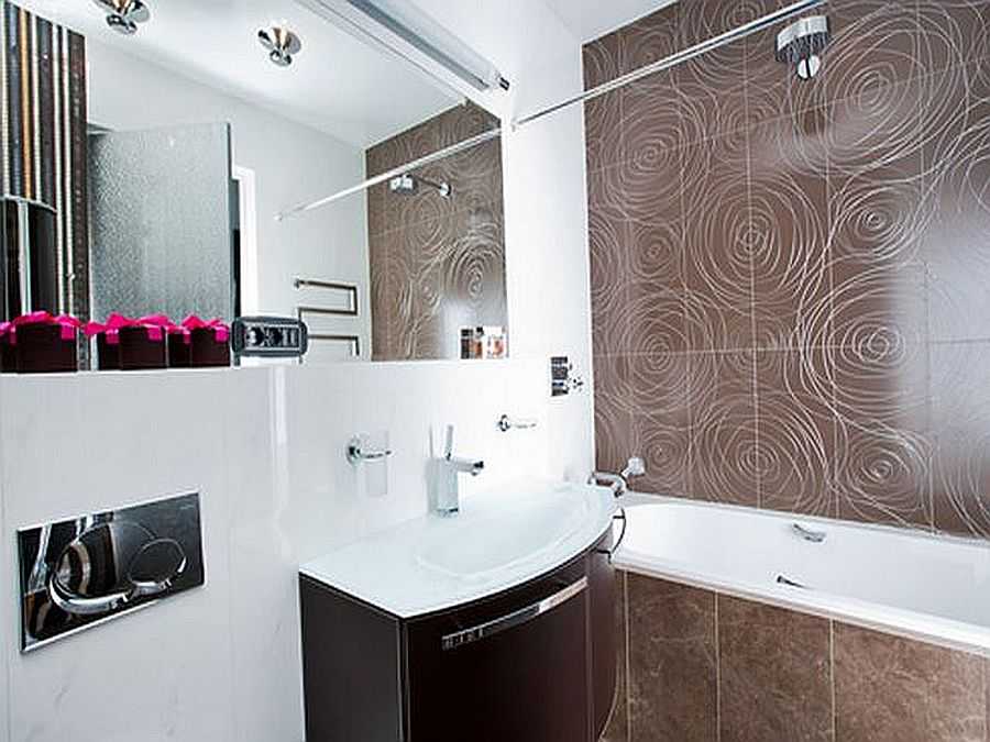 Еще одним нестандартным решением можно назвать использование зеркальной плитки вместо керамической. Она визуально увеличивает пространство, крепится по принципу обычной, но особой прочностью не обладает.