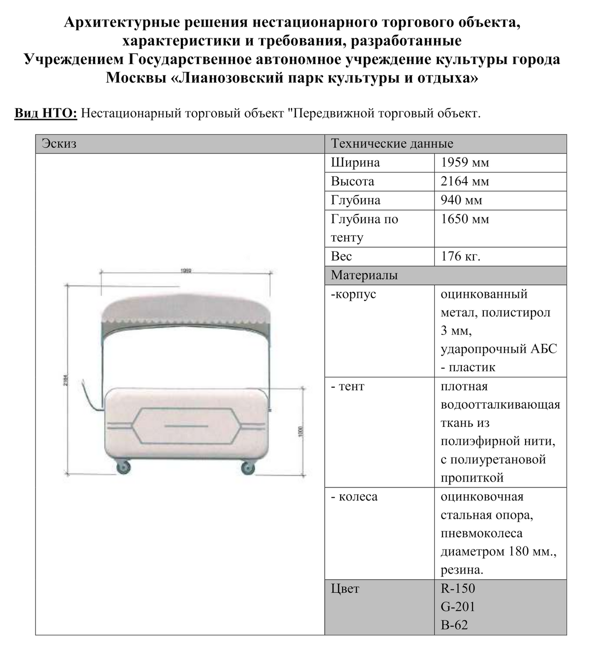 - Тип НТО или вид торговли, который в нем можно осуществлять.